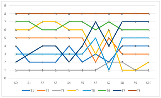 Based on the sensitivity analysis results, it becomes clear that T3 presents the highest consistency among the tools that are ranked in the top places. Other tools may outrank this tool in specific scenarios, but in most cases, they are ranked way below this tool, showing lower consistency. However, some tools, such as T1, T4 and T5, were also considered as alternative preferred solutions, and the various scenarios were presented to the logistics company, which was the one to make the final decision.