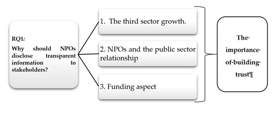 Accordingly, in the present section, we present and discuss in detail the three RQs regarding the theoretical foundations that encourage an NPO to disclose transparent information to their stakeholders. Considering all of these factors, this paper aims to answer the RQs which were previously described in the planning phase as the basis of the present study.