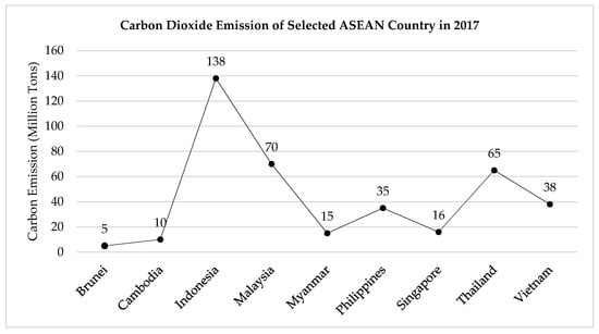 CO2 emissions of ASEAN countries in 2017. Source: ASEAN Jakarta [14].