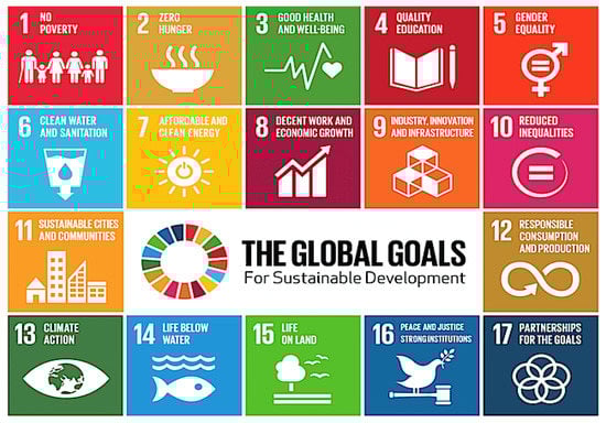 The Sustainable Development Goals (SDGs) are a framework adopted by the members of the United Nations in 2015 in an attempt to achieve a better and more sustainable future for all. This framework addresses the issues of global interest in dealing with poverty, inequality, climate change, environmental degradation, peace and justice, as shown in Figure 6. Specific targets have been set for each of the 17 goals, and it is hoped that these targets will be achieved by the year 2030 [75].