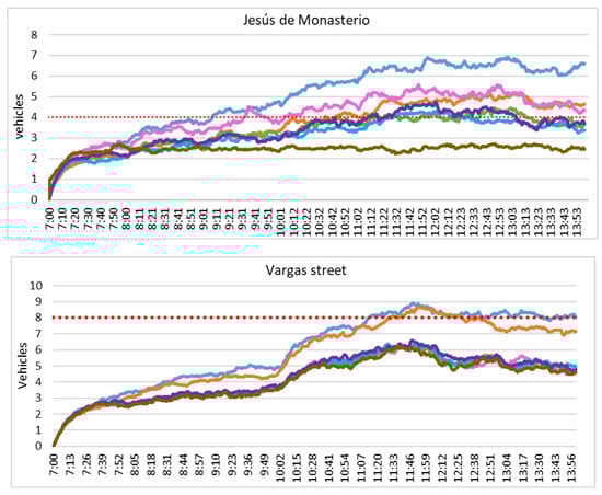 Furthermore, the percentage of illegalities, by duration and type, were similar—except in the case of Jesus de Monasterio Street, in which the duration was less than type illegalities (Table 3). It was observed that illegalities by parking duration (scenario B) had an equal or a greater impact than illegalities by type of vehicle (scenario C).
