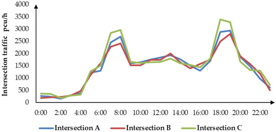 - Zhao, J.; Zhen, Z.; Han, Y. Delay and optimal cycle length model for tandem intersections. China J. Highw. Transp. 2019, 32, 135–144. (In Chinese) [Google Scholar]
