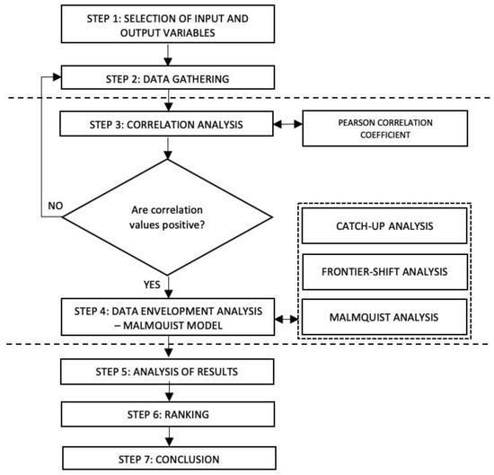 Caves et al. [49] in 1982 proposed the Malmquist productivity index (MPI), which is based on DEA. Fare et al. [50] split Malmquist productivity into two segments: first, the in catch-up inefficiency change; second, the frontier efficiency.