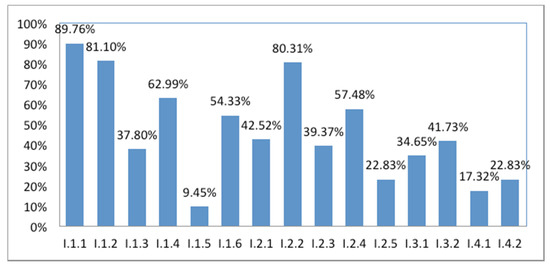 The first of the dimensions analyzes the mechanisms that towns with industrial tourism resources in Catalonia have established to inform potential customers about their main features, facilities, environment, and promotions for tourist activities and visits. As Figure 1 shows, the contents related to information regarding location (I.1) and facilities and services (I.2) are better represented than those related to the environment (I.3) and promotion (I.4).