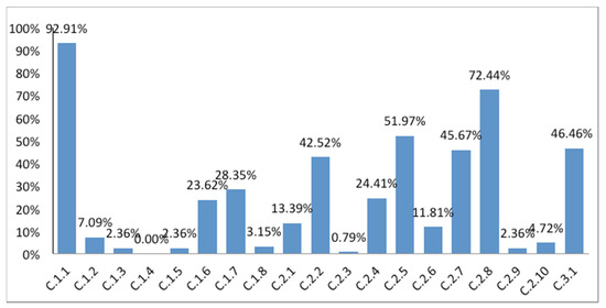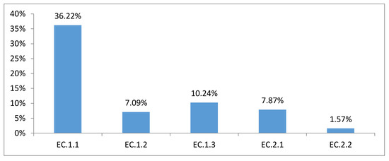 Figure 3 reveals that these items are present in less than 37% of the industrial tourist resources analyzed. However, these data are not alarming as many such establishments have free entry. This is the case with buildings owned by the town or city council, libraries, civic centers, or private companies aiming to promote their products through visits to their facilities. Therefore, payment for these visits is irrelevant (EC.2) and it is sometimes not even necessary to book in advance (EC.1). Bookings are usually made by phone or text message.