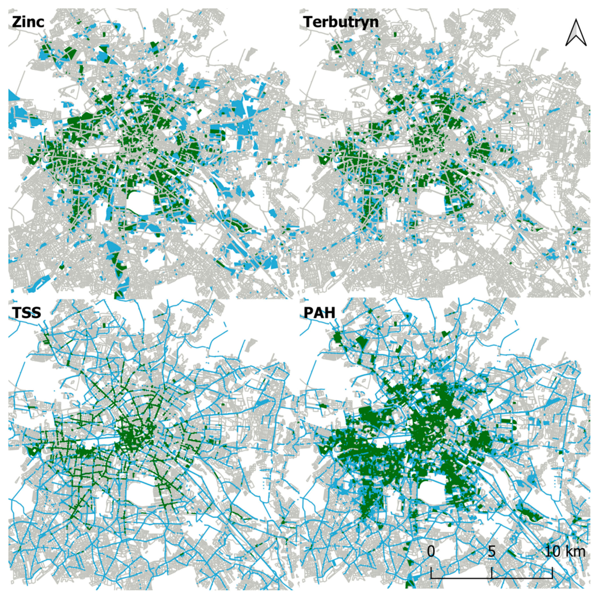Chicago/Turabian StyleSimperler, Lena, Thomas Ertl, and Andreas Matzinger. 2020. "Spatial Compatibility of Implementing Nature-Based Solutions for Reducing Urban Heat Islands and Stormwater Pollution" Sustainability 12, no. 15: 5967. https://doi.org/10.3390/su12155967