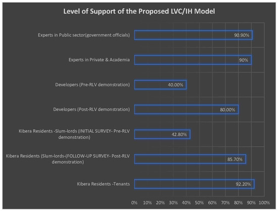 In slum regeneration, LVC could best be implemented through inclusionary housing (IH). IH includes land-use regulations that require developers of market-rate residential developments to make a portion of their units available at prices or rents that are affordable to households unable to afford housing in the market [23,24]. Therefore, in our case, developers would be required to set aside a portion of their units for the slum dwellers, the proportion being determined through economic and residual land-value analyses. IH is a means of using the planning system to create affordable housing by capturing resources created by the marketplace [25]. It is a means of harnessing increased land values to finance the development of affordable housing [24] and is a great tool that governments can use to increase affordable housing for low-income urban residents, particularly in prime accessible neighbourhoods.