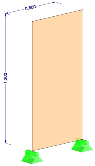 The first step required to move from the experimental model to numerical simulations is the precise recreation of the experimental model in FEM software. For the current study, we used a commercial FEM program created by the company Dlubal called RFEM, version 5-23-01 (Dlubal Software GmbH, Tiefenbach, Germany) [30]. The use of commercially available software, using only standard elements of the program, has the advantage that companies that try to introduce new materials or solutions can use these programs and follow the presented procedure. This way they can expose their product to all different kinds of scenarios without the need to build multiple models to be tested until failure, which increases the costs of the process, and sometimes is even impossible due to the dimensions. They can thus test the product before presenting it to the public or using the results. Since standard procedures and libraries are used, the difficulties in using the software are reduced to a minimum, which would not be the case when using scientific (academic) programs that require a much deeper knowledge of FEM software and more involvement in designing the numerical model. Such software is also often much more expensive.