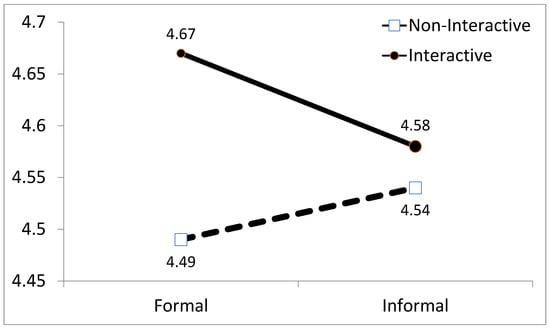Findings from this study provide support to findings that interactivity on social media (Twitter) in political communication had no significant effects on electoral results, based on the analysis of U.K. election data reported by Bright et al. []. That is, while interactivity alone may seem to have limited effect on (potential) voters, the interaction between interactivity and (in)formality shows that trying to be friendly (by using informal language) cancels out the effect of interactivity while portraying authoritative image (by use of formal language) brings interactivity back to life (Figure 1). This particular finding suggests that interactivity still has potential as an important component in the context of political communication.