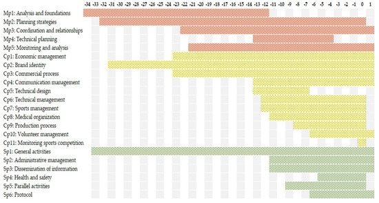 The end result of this theoretical development was the process map proposed for a sports event of this type, which includes the processes classified and the tasks that compose each process (Figure 3).
