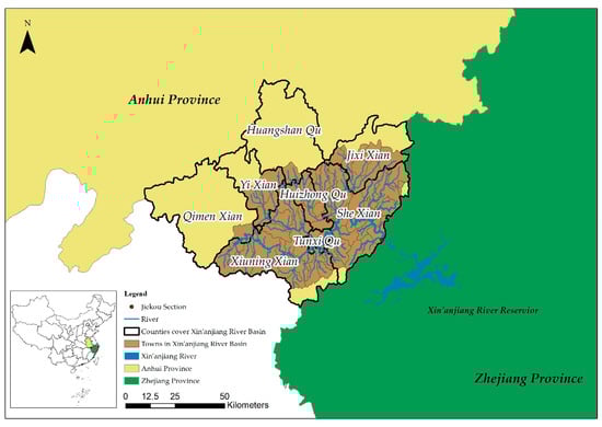 After eight years of preparations, in 2012 the Ministry of Finance and the Ministry of Environmental Protection (renamed Ministry of Ecological Environment in 2018) in China formally launched the first demonstration project to address upstream-downstream ecological compensation across provinces in Xin’anjiang River Basin (XRB), which is of great guiding significance for China [16]. XRB, located at the junction of Zhejiang province and Anhui province (Figure 1), is the largest inflow river of the Qiantangjiang River system and Qiandao Lake in Zhejiang province. XRB and Qiandao Lake are not only important drinking water sources of Zhejiang and Anhui provinces [17] but also ecological security barriers of the Yangtze River Delta region [16].