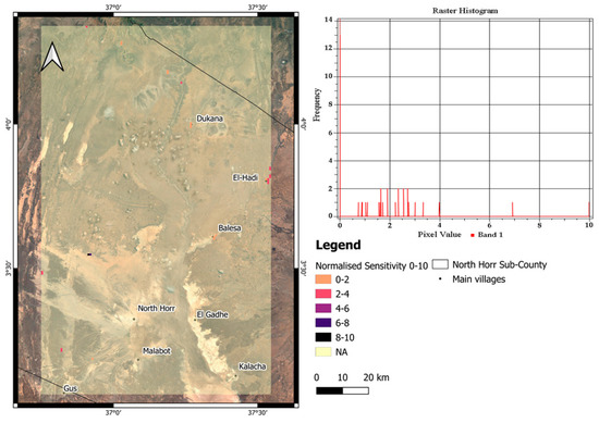The indicators of Exposure, Sensitivity, Adaptive Capacity and Vulnerability are represented with a pixel-based visualization with a resolution of 230 m (based on the highest resolution represented by the Drainage and Texture sub-indicators’ raster resolution), depending on the location of water points, with the aim of providing a local scale vulnerability analysis.