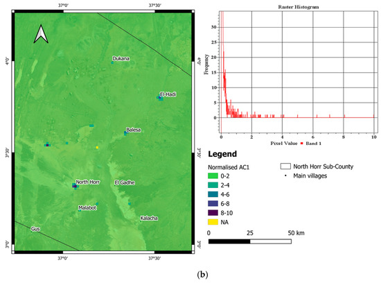 The measures contained in the SCIDP that aim to improve water access are concentrated in the southern-central part of the sub-county around the main town of North Horr (Figure 10a). Indeed, it seems possible to observe a radial pattern distribution of the areas of intervention starting from North Horr. As a matter of fact, North Horr is the chief town of the sub-county. Although it is difficult to reach North Horr from Marsabit town passing through the Chalbi desert, the areas in the North are way more difficult to get to and very close to the border with Ethiopia. The organization of similar interventions in the northern area could be challenging from a logistic point of view. Therefore, North Horr seems to be prioritized in the decision-making process. Moreover, the availability of funds is hardly employed in remote areas where the population density is one of the lowest in all of Kenya (about four inhabitants per km2) [50]. In fact, at the moment, funds of sustainable growth are preferably diverted in the areas along the Great North Road (the road going from El Cairo to Cape Town passing through Marsabit County), where a rapid population influx is expected [53].