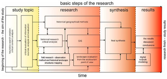 Historical and field research. An essential step in elaborating the topic were the methods of historical research, especially critical analyses of historical sources, and the deductive and comparative-historical method. Following the historical research, we continued in the summer of 2019 with comprehensive field research of the historical landscape [73,74,75,76,77,78,79,80]. The preparation of the author’s photo documentation was also a part of the field research.