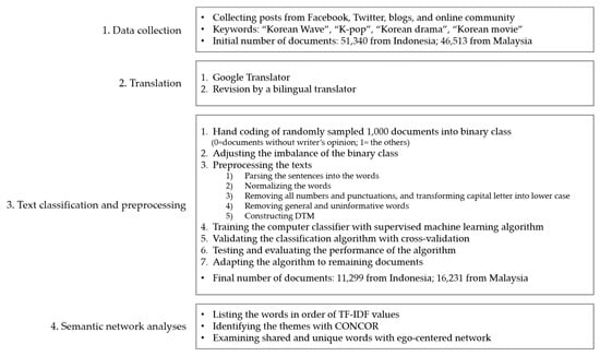 Chicago/Turabian StyleLee, Yu Lim, Minji Jung, Robert Jeyakumar Nathan, and Jae-Eun Chung. 2020. "Cross-National Study on the Perception of the Korean Wave and Cultural Hybridity in Indonesia and Malaysia Using Discourse on Social Media" Sustainability 12, no. 15: 6072. https://doi.org/10.3390/su12156072