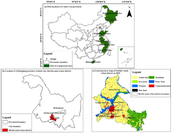 Heilongjiang Province is one of the seven pilot ecological provinces in China. Harbin, the capital city of Heilongjiang Province, is an important central and representative city in northeast China. A comprehensive analysis and understanding of the changing and evolving characteristics of the spatial pattern of land use change and ecosystem services, exploring the relationship between them, and the state of interaction between the natural environment and socio-economics will help to capture the ecological and environmental effects of LUCC. It can provide a scientific basis for the optimal allocation of land use in the three northeastern provinces of China (Heilongjiang, Jilin, Liaoning), China as a whole, and other developing countries, and play a representative role in ensuring ecological security and sustainable development [22].