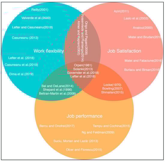 Figure 1 highlights the most relevant studies focusing on work flexibility, job satisfaction and job performance, and also studies at the intersection of these three relevant topics. Table 1 presents an overview of the most relevant studies regarding work flexibility, job satisfaction, and job performance at a national level.