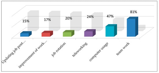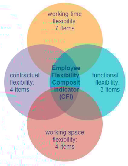 Among the main characteristics of sustainable HRM pointed out by Stankeviciute and Savaneviciene [], two core characteristics are of particular interest for our research—employee development and a mix of flexible working time, and new types of workspaces to increase job satisfaction leading to sustainable HRM. Casuneanu identified the following four different forms of work flexibility: working time flexibility, contractual flexibility, functional flexibility (vocational training), and wage flexibility [].