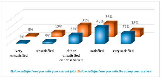 Key factors enhancing overall levels of job satisfaction are communication and nature of work [], the economic status provided by a particular job [], emotional stability [], financial incentives [], and the combination between extrinsic factors (bonuses and monetary benefits) and intrinsic factors (professional fulfilment and good relationships) [].