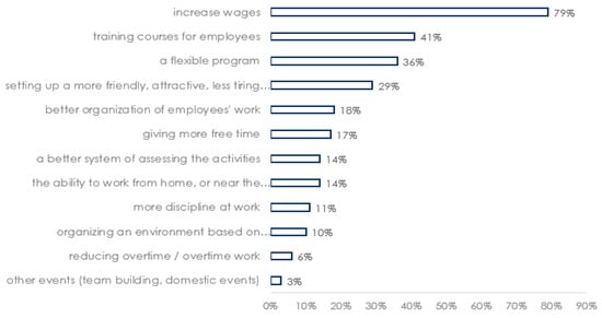 Strenitzerová and Achimsky [] offer a new perspective of the achievement of employee satisfaction and loyalty as part of sustainable human resource management, revealing that higher financial rewards lead to the greatest satisfaction, while the employees’ age, job position, and length of employment strongly impact employee loyalty. The results present a particular interest for our research, since employee satisfaction is seen as a key challenge for sustainable human resource management.