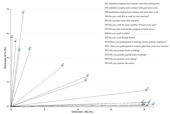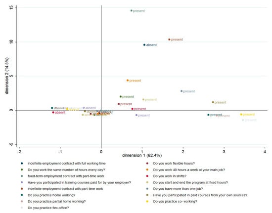 Section 4 is dedicated to empirical results and it is divided into seven sub-sections. The first is dedicated to the presentation of a profile of Romanian employees profile, while the next two present the main characteristics of job satisfaction and work flexibility among Romanian employees. Analysis of the impact of new forms of workspace flexibility on job satisfaction, job performance, personal time and space management, level of comfort, level of organizational performance, level of personal and professional relationships, level of professional development, and the overall level of work motivation. Section 4.5 presents the main differences among Romanian employees regarding different forms of work flexibility, and Section 4.6 is dedicated exclusively to the development of a composite indicator of Romanian employee flexibility using multiple correspondence analysis. The last sub-section tries to respond to the following question, “Does flexible working increase job satisfaction?” to capture the impact of both the flexibility composite indicator and the individual forms of work flexibility on job satisfaction using the binomial logistic regression models emphasizing the main implications for achieving sustainable HRM desideratum. The paper ends with main conclusions and policy implications, which are considered fundamental in the process of redesigning HRM in the face of “future work” challenges.