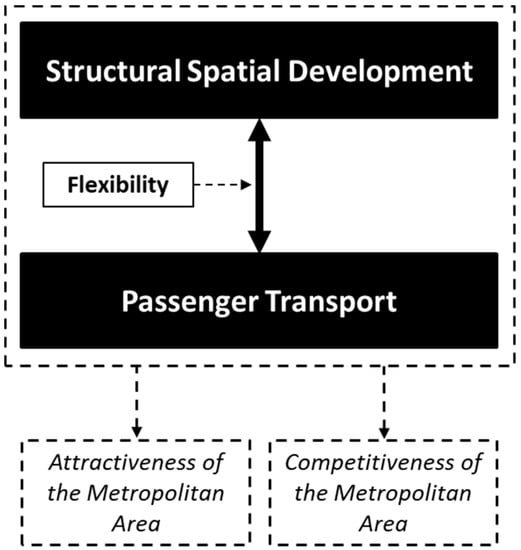 - (Urban) passenger transport is defined as the “provision of access and mobility for people […], linking origins and destinations both internal and external to the urban area” []. It makes use of the passenger transport infrastructure of the Structural Spatial Development.