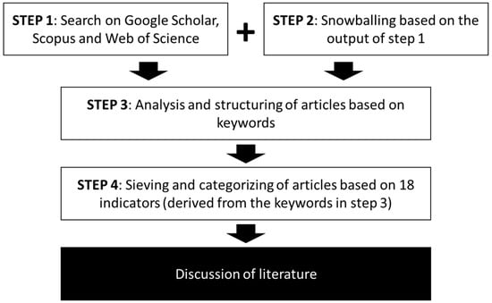 The methodology of the literature review aimed at identifying and covering the existing relevant literature. This Section covers the way the literature was collected and the selection of the relevant papers. The collection was approached by four steps being taken (and visualized in Figure 2):