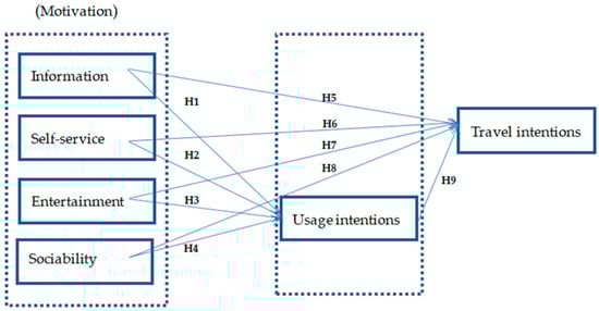 Considering the above and the feature of travel-related WOAs, information-seeking, self-service, entertainment, and social motivations may be the primary motivations behind travel intentions. Therefore, we propose the following hypotheses: