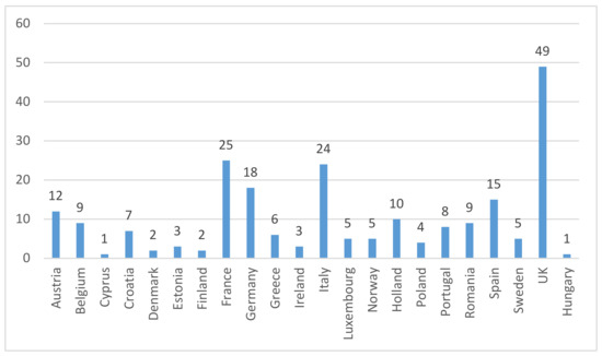 - “Home country” factor and 22 groups of banks (one group per country) have been examined. At the level of significance of 5%, the country is a discriminatory factor in the contribution of banks to the SDGs. The null hypothesis (p-value < 0.05) is rejected: It can be affirmed that the country may differentiate the contribution to the SDGs. Consistently with Jensen and Berg [70] and Vormedal [71], specific attributes of the country of origin are relevant determinants for reporting. The relevance of a link between country and orientation toward the SDGs is confirmed by recent papers, which stress the importance of studies based on a comparison between the policies implemented by each country in pursuing the 17 goals [72]. This result also corroborates the findings obtained from the study by Ike et al. [20], which shows that the influence of the Country System in the reporting on the SDGs also impacts on the prioritization of goals.