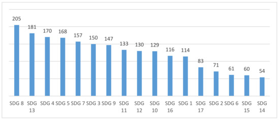 - Deloitte-SDA Bocconi [10], a report showing that 21% of EIP (198 DNF published within 15 July 2018)—within the scope of the Legislative Decree 254/16—provides SDG reporting mainly on goals 1, 3, and 11.