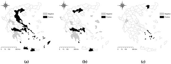 - Monastiriotis, V. Examining the consistency of spatial association patterns across socio-economic indicators: An application to the Greek regions. Empir. Econ. 2009, 37, 25–49. [Google Scholar] [CrossRef]