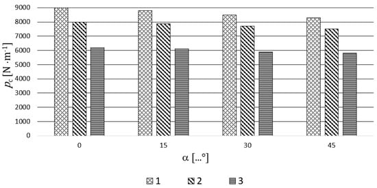 W process. It should be stressed here that cutting plant material at the angle of its symmetry axis results in a lower unit cutting resistance as compared to cross-cutting. In the case of cutting through plant material, the size of the section area does not have such a significant impact on cutting resistances as in the case of cutting, for example, steel pipes. This results, most of all, from the structural plant material’s structure, which is different to steel and reveals strong features of anisotropicity.