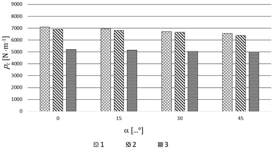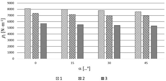 The angle of the material layer cutting has been defined as the angle included between the direction of material’s feeding and the cutting edge of the cutting drum’s knife. The values of the material’s cutting angle α have been assumed based on the studies of the authors and studies described in literature concerning the cross-cutting (α = 0°) of single plants. However, for the purposes of the experimental studies, the authors have assumed that the plant material’s layer, apart from cross-cutting (α = 0°), shall be also cut diagonally (α = 15°, 30°, and 45°). So, cross-cutting concerns only a cutting drum of a classical design and diagonal cutting is related to a cutting drum of the conical type.