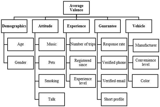 Valence represents a comparable measure of average rating scores from consumers measured on a scale ranging from 0 to 5. Demographics represents a vector of variables reflecting a driver’s age and gender. Attitude represents a vector of variables reflecting a driver’s preferences for music, acceptance of pets and smoking behavior, and willingness to talk with passengers (measured on a rising three-point scale from 1 = Bla to 3 = BlaBlaBla). Experience is a vector of variables reflecting the driver’s experience level by controlling for the number of trips, the amount of time (measured in days) since being registered on the sharing website, and the experience level given by BlaBlaCar that evolves with time and travel activity (measured by the four dummy variables intermediate, experienced, expert and ambassador). Guarantee represents a vector of variables reflecting the driver’s communicational behavior by controlling for the driver’s response rate to messages from passengers, verification of phone number(s) and email address(es), and the completeness of the short profile description. Vehicle is a vector of variables controlling for the car brand the driver owns, the corresponding car convenience level (measured on a four-point scale from 1 = Simple to 4 = Luxury), and the car color.