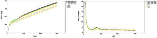 Figure 7. Water release curves for Al2O3 (59–69 mg) and carbon nano-tubes (12–17 mg) samples.
