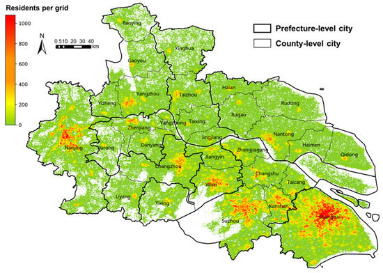 Spatial distribution of residents identified from the dataset. Aggregated into 500 m × 500 m mesh grids.