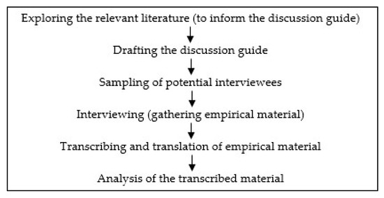 Hermeneutical and post-structuralist frameworks were adopted in the form of a reflexive methodology, while framing the research, forming the research questions, designing the approach, as well as while analyzing the empirical material (see [24,25]). A reflexive methodology involves engaging a combination of destruction and reconstruction in the approach to the research problem [25]. This implies that the researchers, aware of their own pre-conceptions, build the research and engage with it on many levels. Reflexivity is intended to produce interpretations and challenge them, and allows for more modest, less naïve means of interpretation [25].