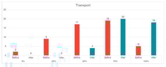 Figure 7. Shows the results of the pre-, and post-test Transport issues. - Observations: Two critical observations were reported (Figure 8). Both observers collected their documented results in which they had specifically commented on the ability of decision-making, communication, accountability, empowerment of other group member and delegation of tasks. Consensus was made and the groups were exposed to the observers’ understanding to unearth individual motivations or behaviors that were not immediately obvious in a group setting [24,25].