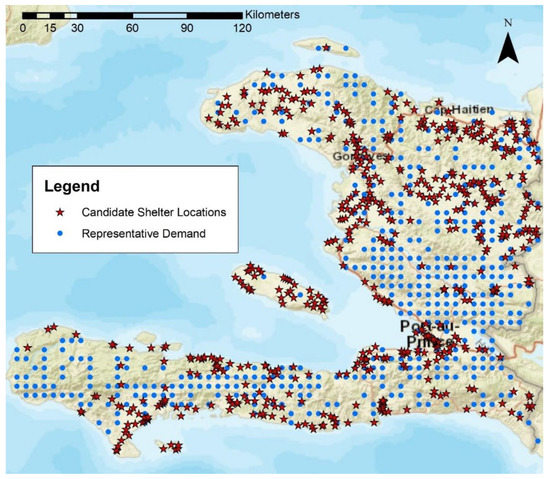 Candidate shelter and representative demand inputs to network analysis for given scenario [48,53].