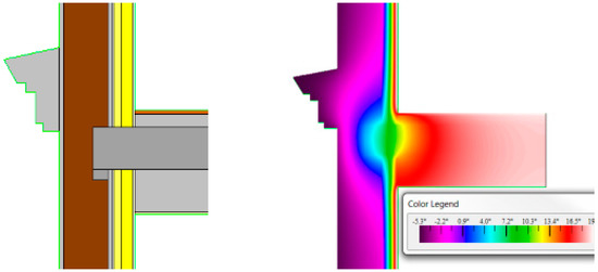 A local thermal study of the critical points that might form a thermal bridge in different rehabilitation scenarios was carried out, in order to compare the different solutions proposed. The specific THERM software was used [57]. This is a steady-state, two-dimensional heat calculation program, which permits obtaining the characteristics of the thermal bridges in the building after implementing different insulation measures in the opaque envelope. After establishing several hypotheses, the comparison of results of the different constructive insulation solutions is shown below in graphic form, together with the advantages and disadvantages that each of the solutions entails in the case that concerns us.