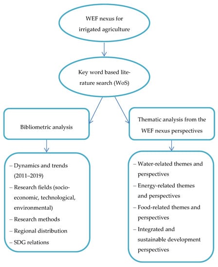 Analytical approach to the review of WEF nexus literature related to irrigated agriculture (own graph).