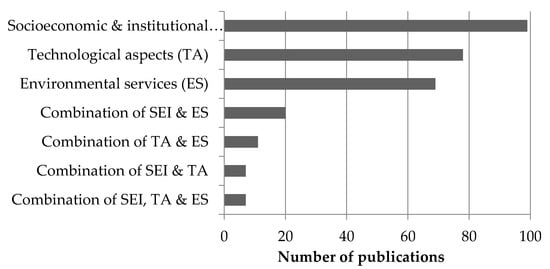 To understand the types of scientific methods employed in the papers, we analyzed the research methods of each paper. After a detailed review of individual papers, we divided them into two categories: review analysis and original (case study) research (participatory studies, modeling, field experiments and remote sensing analysis). We further reviewed the papers and grouped them into three research perspectives: socioeconomic and institutional perspectives, technological perspectives, and environmental management perspectives. This categorization was chosen based on the suggestion by Albrecht et al. [20] that it helps one to better understand complex interactions among multiple resource systems and policy needs.