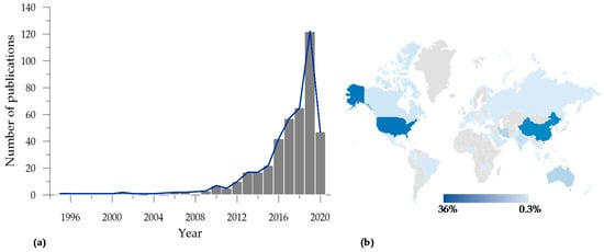 (a) Publications on MICP—a year by year picture (b) country distribution of contributing authors (data source: Web of Science Creative Analytics [51]).