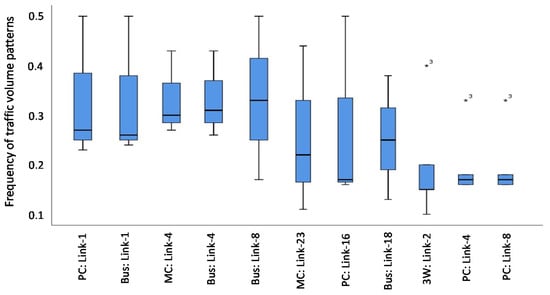To conceive the probability function, it is important to know the distribution of data. The traffic volume data on different road links were used to assess the normality of the data, which demonstrated a normal distribution pattern for many cases, while the skewed distribution was also evident (Figure 4).