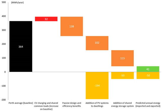 Expected annual household energy reductions against Perth average base line. Source: [55].