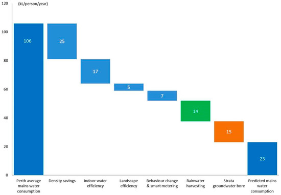 Expected annual mains water reduction on a per-person basis against the Perth average baseline. Source: [56].