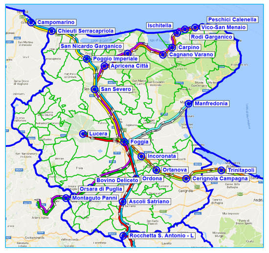As an example of the final design scenario (plan), the paths of rural lines are reported in Figure 9.