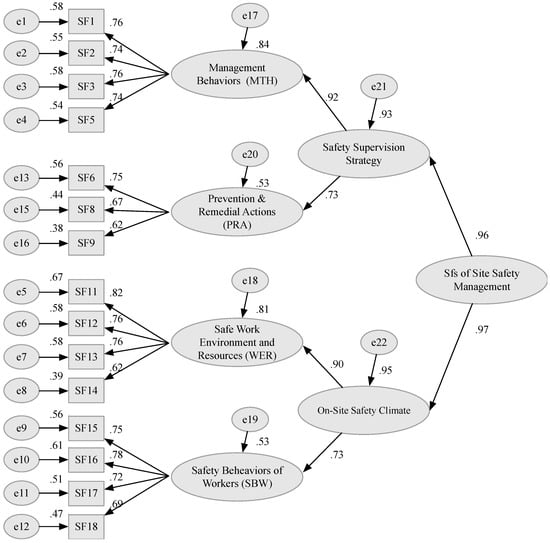 Figure 2 shows the safety management SFs’ final SEM, and the path correlation coefficients.