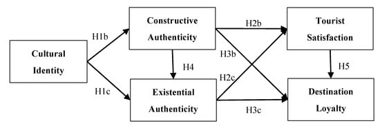 Authenticity perception is a well-known influencing factor in tourist satisfaction and has received increased research attention [41]. Satisfaction generally accompanies the relationship between loyalty and primacy perception. Authenticity perception can influence loyalty through the mediating role of satisfaction and can likewise directly influence loyalty [42,43].