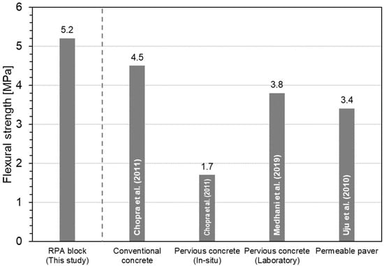 Flexural strength of the RPA block and comparison with other pervious pavement materials.
